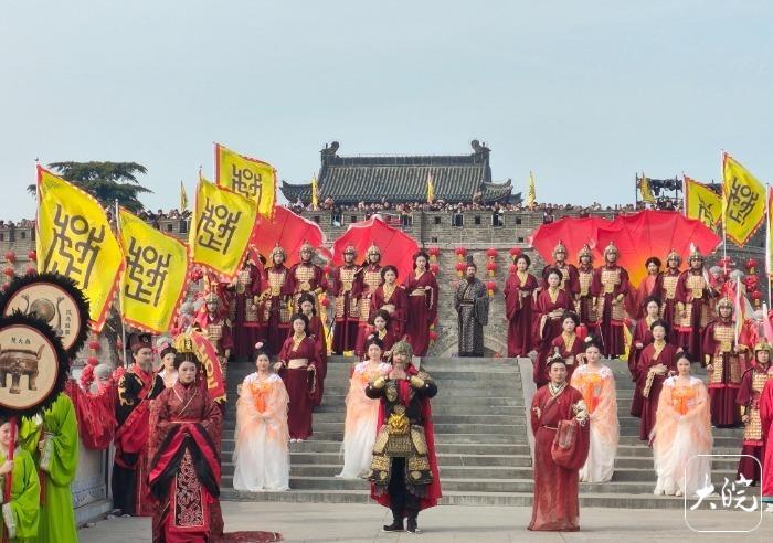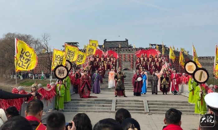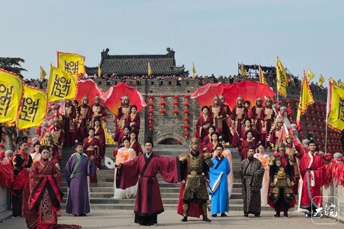 古城迎宾模范,礼乐轮流、东说念主物纪律登场,再现寿州与谚语典故的深厚渊源。楚考烈王、春申君算作主宾登阶迎宾,诠释寿春算作楚都的历史地位与“珠履三千”“当断抑止,反受其乱”等典故渊源;廉颇、刘安、时苗、谢安、谢玄等历史东说念主物按次亮相,永诀演绎“改恶为善”“一火羊补牢”“淮橘为枳”“时苗留犊”“淝水之战”等经典谚语故事,以古礼问候、以典故传情,诉说古城的忠义、机灵、贞洁与英杰风格。
