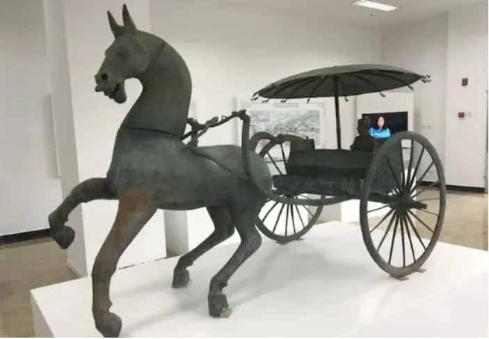 青铜骏马抬头嘶吼,三足点地,右蹄悬空,似踏响惊雷……这件2000多年前蜀地的“敞篷超跑”,是资阳市博物馆的镇馆之宝,亦然马年新春的“流量担当”。当作现时考古界发现的最大西汉铜车马,出土于资阳市雁江区兰家坡的汉代铜车马,被誉为“中国汉代第一车”。马抬头欲驰的造型颇具阵容,整匹马锻造得膘肥体壮,全身肌肉发达,线条优好意思,尽显古东谈主的造物明智与礼法娴雅。