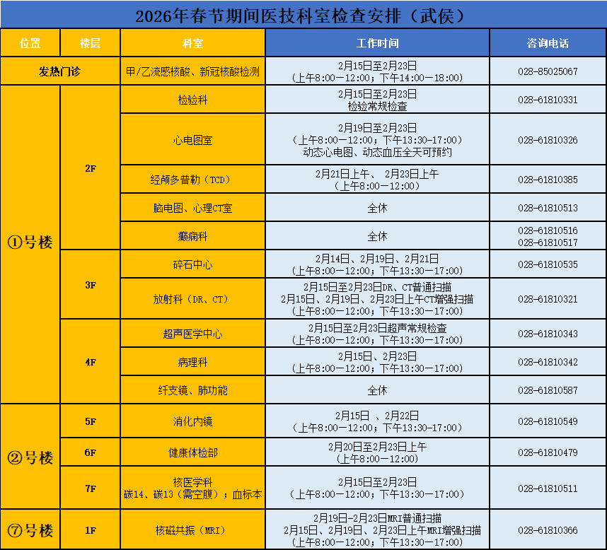 病院老师科、心电图、超声医学科、发射科、核医学科假期辽远开展搜检责任,其余各项老师及搜检假期分时段开展(具体时刻请以病院公众号发布为准)